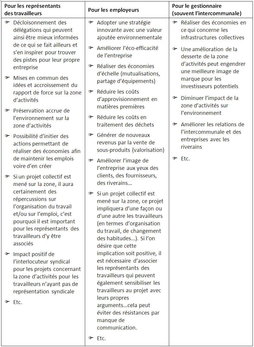 - Quels sont les avantages d'une concertation sur la zone d'activités pour les délégations syndicales, les employeurs et les gestionnaires de zone ?